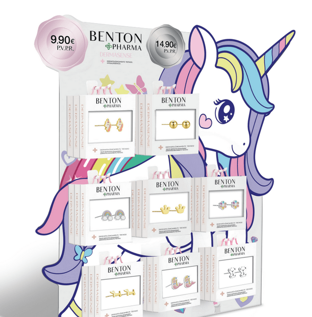 Expositor unicornio con 8 modelos infantiles hipoalérgénicos dermatologicamente testados